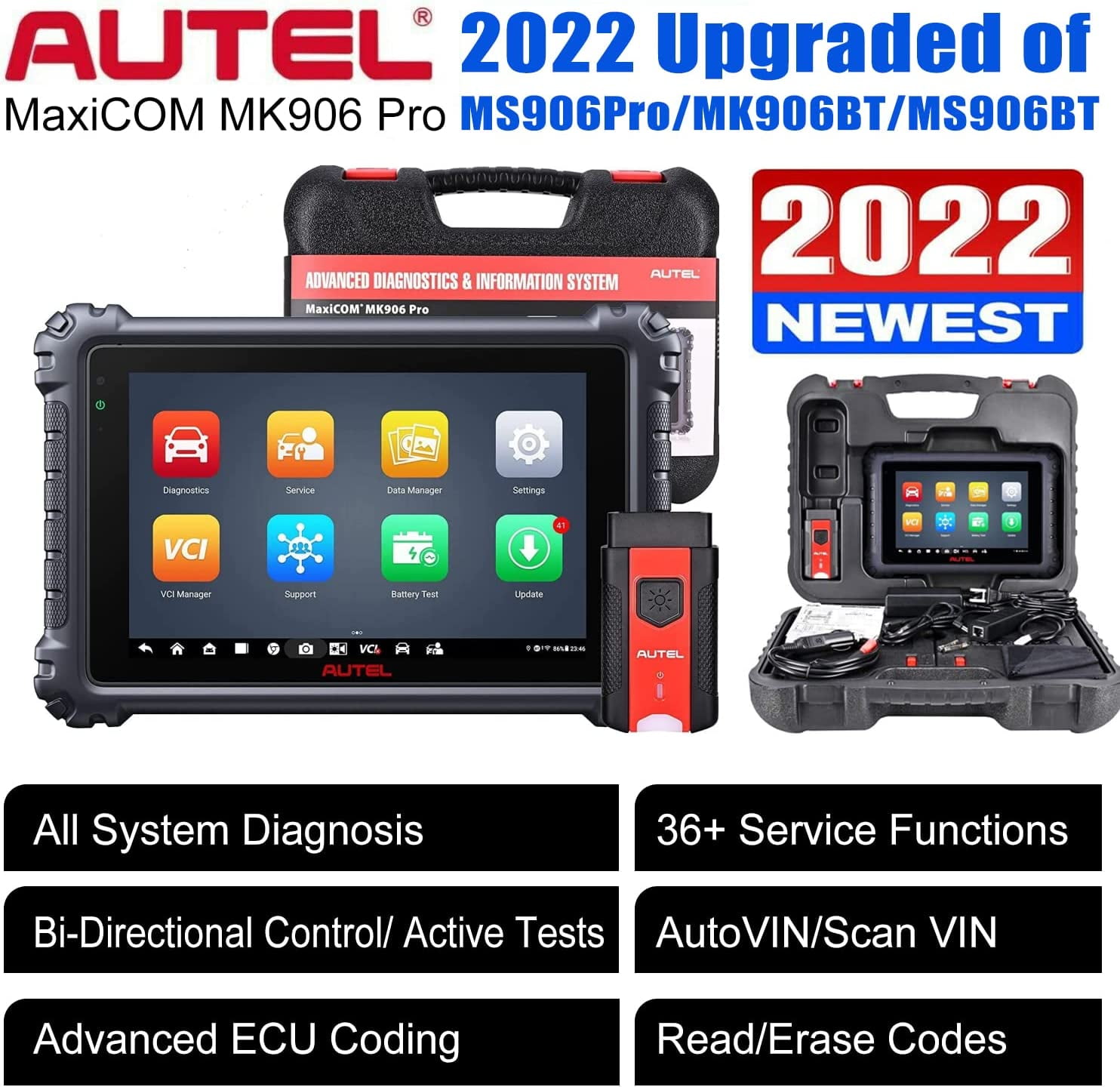 Autel Scanner Maxicom Mk906 Pro 2022 Upgraded Of Ms906pro Mk906bt Ms906bt All System Diagnosis 36 Service Active Test Bi Directional Control Read Code Auto Scan Vin License Advanced Ecu Coding Walmart Com
